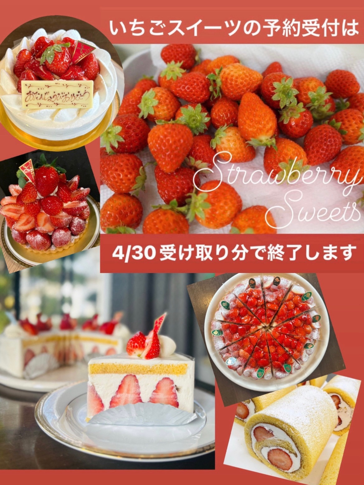 ・いちごタルト(カット)・あまおうタルト(カット)・いちごクレープ・いちごのショートケーキ・いちごのロールケーキ・いちごの生クリームデコレーション(15cm)・いちごタルト(15cm)上記のいちごスイーツの予約受付は「 […] -